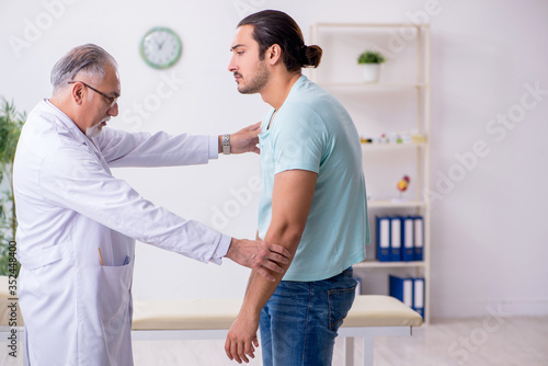 © Elnur, Obraz premium Young back injured man visiting experienced male doctor