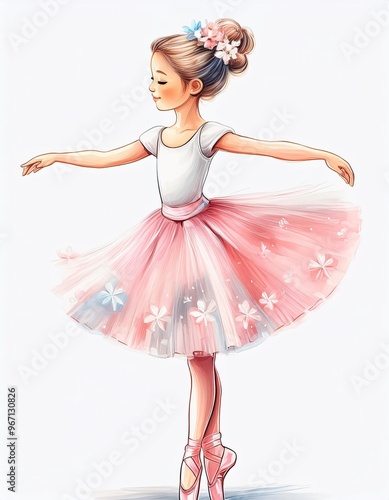 Fototapeta premium Young ballerina elegantly performs ballet in her beautiful pink tutu