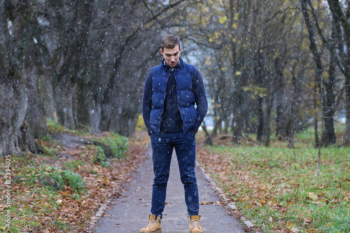© alexkich, Fototapeta premium Young beard man in an autumn
