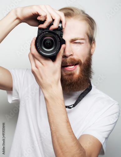 © Raisa Kanareva, Fototapeta premium Young bearded photographer