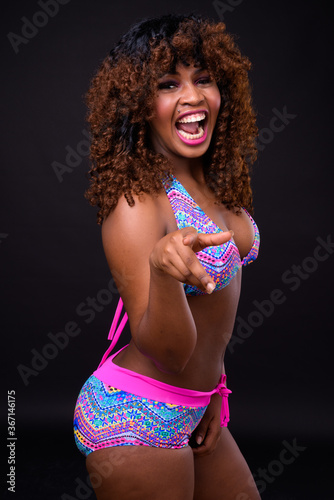 © Ranta Images, Fototapeta premium Young beautiful African woman against black background