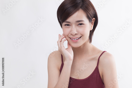 © dreamsseeker2, Fototapeta premium Young beautiful Asian female model on the white background