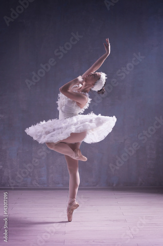 Fototapeta premium Young beautiful ballerina dancing in studio
