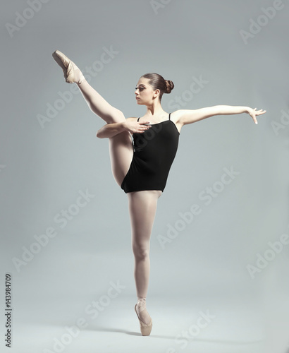 © Africa Studio, Fototapeta premium Young beautiful ballerina dancing on light background