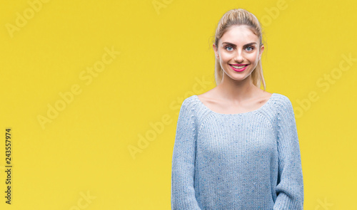 © Krakenimages.com, Fototapeta premium Young beautiful blonde and blue eyes woman wearing winter sweater over isolated background with a happy and cool smile on face. Lucky person.
