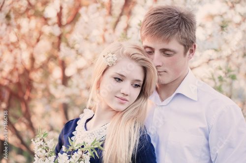© Maya Kruchancova, Fototapeta premium young beautiful couple in spring garden