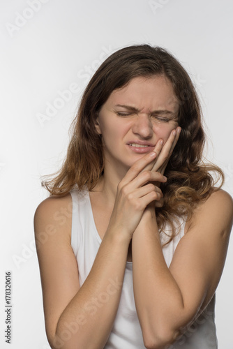 © Oksana Bessonova, Naklejka premium Young beautiful giirl on white background with toothache