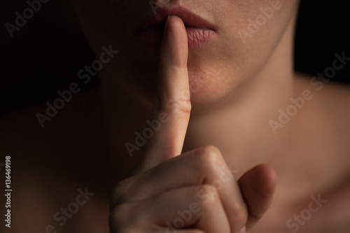 Fototapeta premium young beautiful girl holding a finger to her mouth