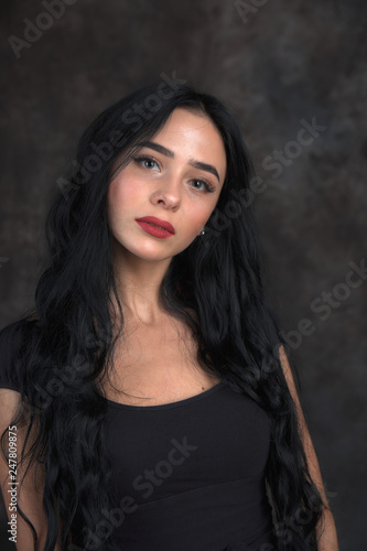 © Valiantsina, Fototapeta premium Young beautiful girl on a dark background