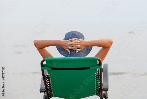 © Andrey, Naklejka premium Young beautiful girl resting on the ocean.