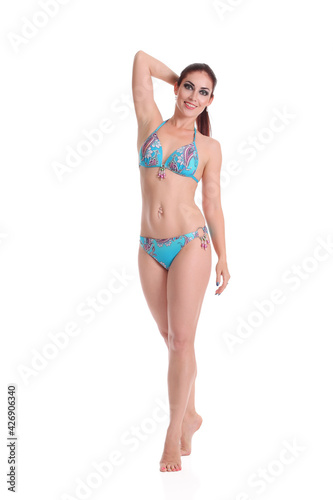 © zhagunov_a, Fototapeta premium Young beautiful happy woman in bikini