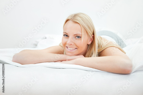 Fototapeta premium Young beautiful woman lying in bed