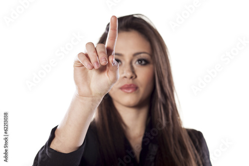 Fototapeta premium young beautiful woman touching an empty space