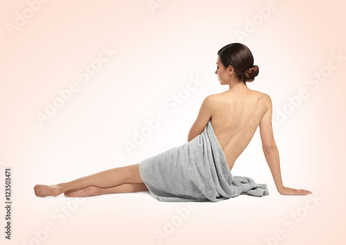 © Africa Studio, Fototapeta premium Young beautiful woman with towel on light background