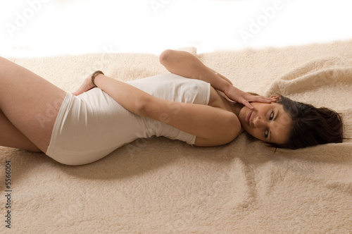 © Tadija Savic, Naklejka premium Young beauty girl lying and doing caressing herself