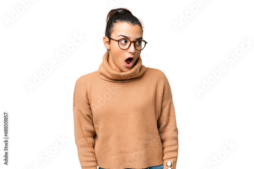 Fototapeta premium Young beauty woman over isolated chroma key background doing surprise gesture while looking to the side