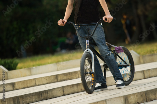 © Dmitri MIkitenko, Fototapeta premium young biker riding a bmx bicycle