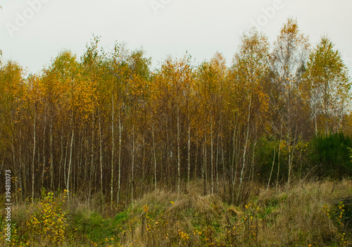 Fototapeta premium young birch grove in autumn colors