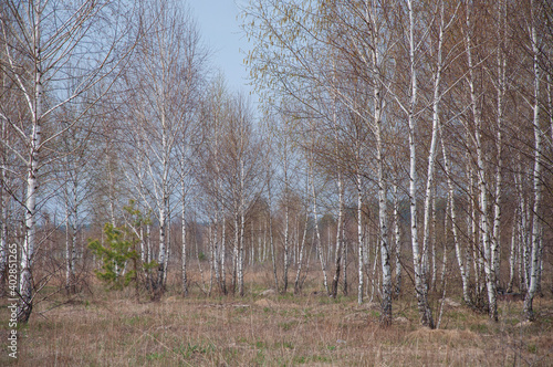 Obraz premium Young birch grove on a spring day