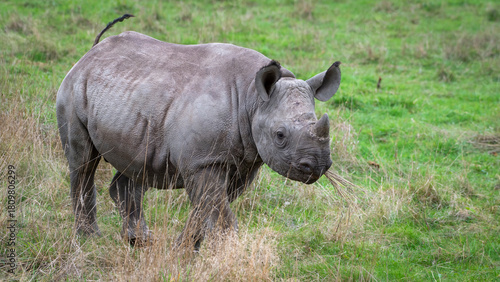 © Ian, Fototapeta premium Young Black Rhinoceros Calf Feeding