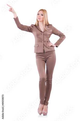 © Elnur, Fototapeta premium Young blond businesswoman pressing virtual button isolated on