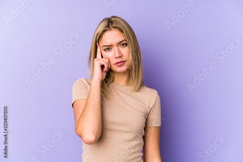 Fototapeta premium Young blonde caucasian woman isolated pointing temple with finger, thinking, focused on a task.