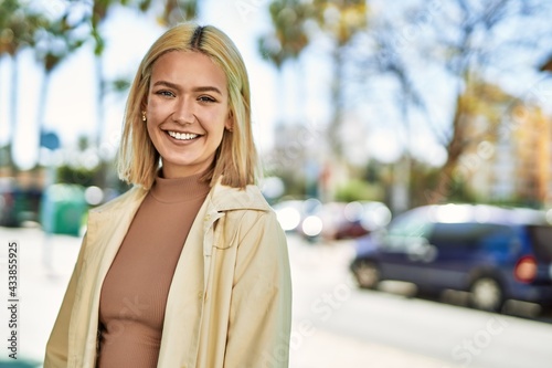 Fototapeta premium Young blonde girl smiling happy standing at the city.