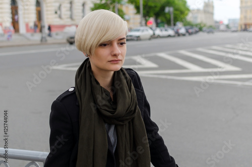 Fototapeta premium Young blonde girl walking on the city