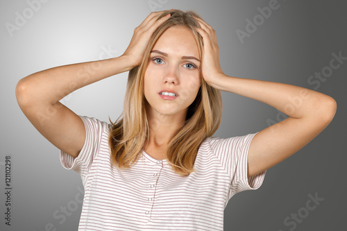 © fotofabrika, Fototapeta premium Young blonde tired woman