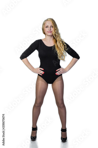 Fototapeta premium Young blonde woman in black posing.