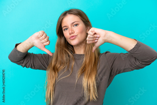 Fototapeta premium Young blonde woman isolated on blue background proud and self-satisfied