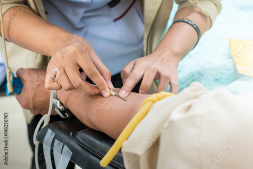 © namotrips, Fototapeta premium Young blood donor With pleasure