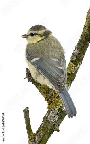 © Eric Isselée, Naklejka premium Young Blue Tit, Cyanistes caeruleus, 45 days old, perched