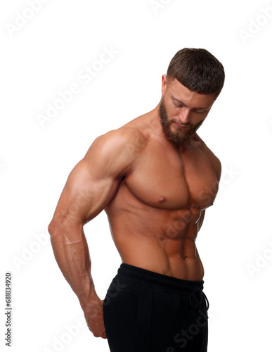 Fototapeta premium Young bodybuilder with muscular body on white background