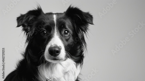 Fototapeta premium Young border collie black and white sitting and gazing at the camera aged one...