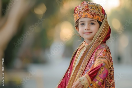 © Elena, Fototapeta premium Young Boy In Traditional Indian Clothing Smiles In A Blurred Background