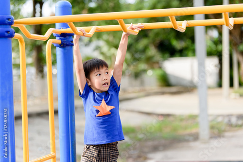 Fototapeta premium Young boy play with yellow bar
