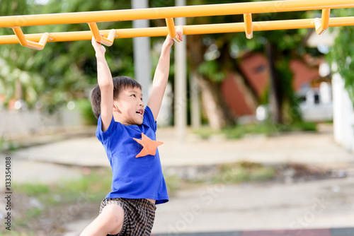 Fototapeta premium Young boy play with yellow bar