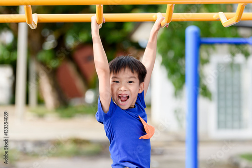 Fototapeta premium Young boy play with yellow bar