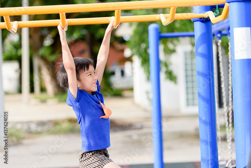 Fototapeta premium Young boy play with yellow bar