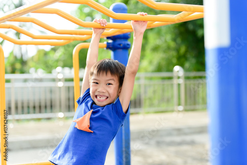 Fototapeta premium Young boy play with yellow bar