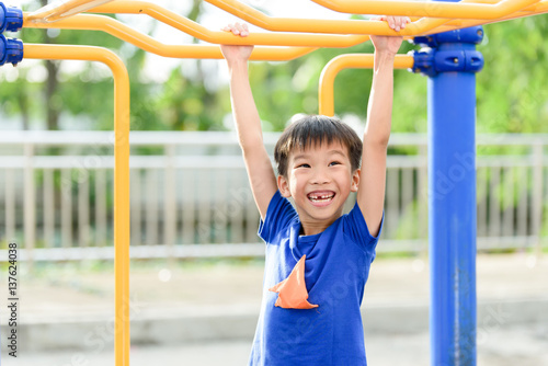 Fototapeta premium Young boy play with yellow bar