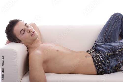 © Hugo Félix, Obraz premium Young boy sleeping on couch