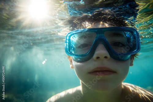 © Riya, Fototapeta premium young boy snorkeling in clear blue water