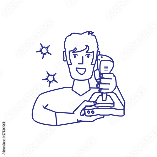 Fototapeta premium young boy using video game joystick control
