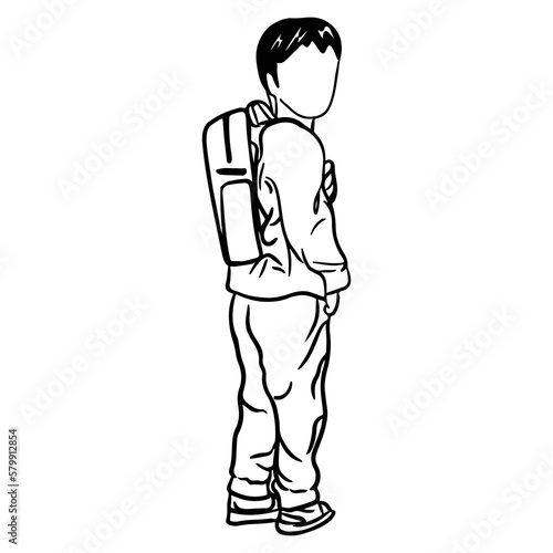 Fototapeta premium Young boy with backpack, Back to school concept line art.