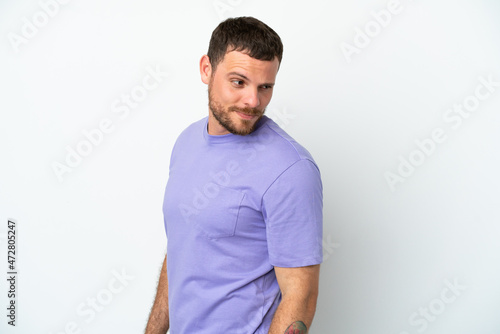 © luismolinero, Fototapeta premium Young Brazilian man isolated on white background . Portrait