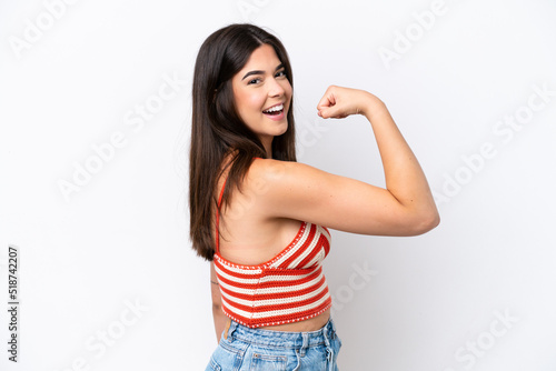 Fototapeta premium Young Brazilian woman isolated on white background doing strong gesture