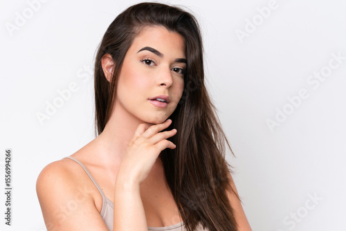 © luismolinero, Fototapeta premium Young Brazilian woman isolated on white background . Portrait