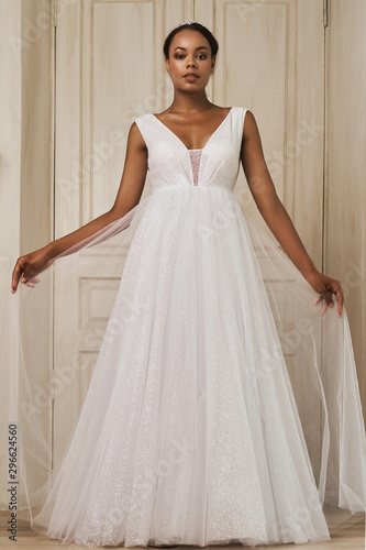 © VITALII SMULSKYI, Fototapeta premium Young Bride Standing by Window Smiling